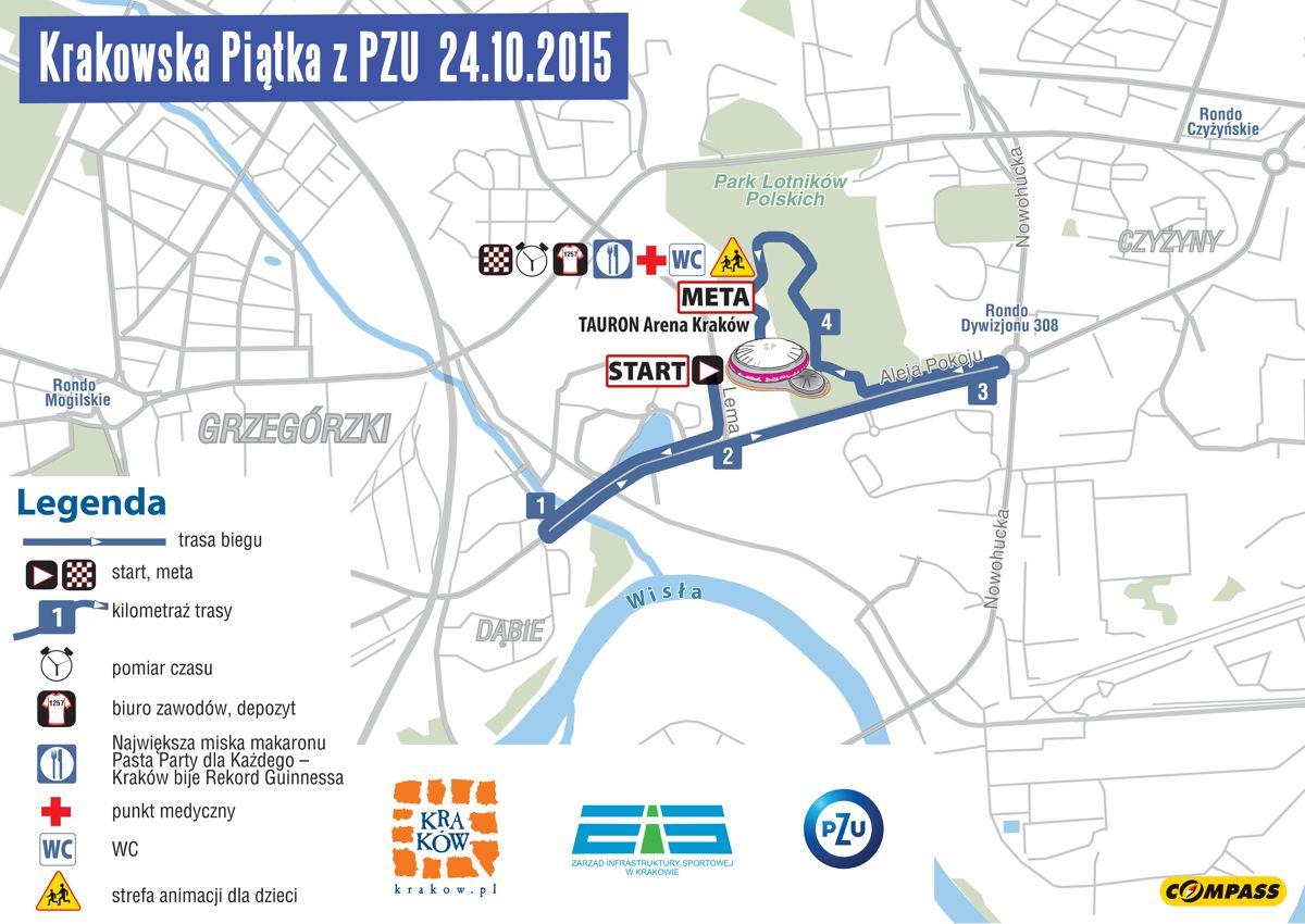 Dla miłośników biegania, którym stopień zaawansowania nie pozwala jeszcze aby wziąć udział w 2. PZU Cracovia Półmaratonie Królewskim oraz dla specjalistów od krótszych dystansów przygotowana została specjalna propozycja – Krakowska Piątka z PZU. Zapraszamy każdego, kto chciałby wyruszyć na trasę o długości 5 km z tej samej linii startu (znajdującej się na ul. Lema przed TAURON Areną Kraków) co półmaratończycy, a finiszować również na płycie głównej wewnątrz największej i najnowocześniejszej hali widowiskowo-sportowej w Polsce! Wystarczy mieć ukończone 16 lat i być w stanie dotrzeć do mety w regulaminowym czasie 40 min.